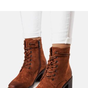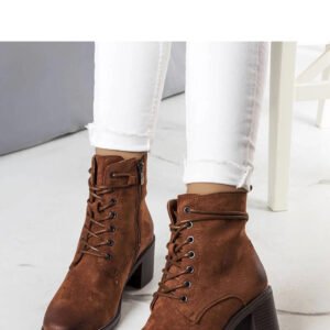 Brązowe botki Sanlow to idealne obuwie na chłodne jesienne dni. Mają standardową wysokość słupka i kwadratowy nosek, a wokół cholewki przy kostce zostały oplecione sznurówkami, dodając im charakteru. Wykonane z ekoskóry zamszowej, posiadają wysoką cholewkę z zamkiem błyskawicznym na boku oraz wiązaniem na sznurówki z przodu. Nosek o kwadratowym kształcie jest lekko ocieplony kocem obuwniczym. Te casualowe botki na obcasie świetnie sprawdzą się w codziennych stylizacjach na jesień. Numeracja jest standardowa, więc warto kierować się własnym rozmiarem. Dodatkowo, botki posiadają ocieplenie, co zapewni komfort i ciepło podczas noszenia. Materiał podeszwy to tworzywo sztuczne, a kolor podeszwy to czarny. Botki Sanlow to idealny wybór na jesień/zimę!