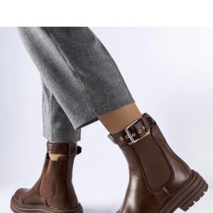 Brązowe botki z ozdobnym zapięciem Jonesboro to doskonały wybór na chłodniejsze dni. Ich ocieplana konstrukcja zapewnia komfortowe ciepło nawet w mroźne poranki i wieczory. Dzięki wsuwanej formie, są bardzo praktyczne i łatwe w użyciu, co jest szczególnie przydatne w pośpiechu. Gumowa podeszwa gwarantuje pewność kroków na różnych powierzchniach, a trwałe szycie zapewnia długotrwałość użytkowania. Te modne botki na średnim obcasie są wykonane z wysokiej jakości skóry ekologicznej i są dostępne w atrakcyjnej cenie. Idealne połączenie stylu, wygody i funkcjonalności dla każdej kobiety.
