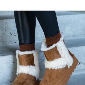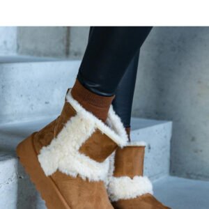 Brązowe ekozamszowe śniegowce na platformie zdobione futrem Peters – Solea