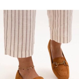 Brązowe mokasyny z klamerką Zamari są idealnym wyborem dla każdej modnej kobiety. Wykonane z wysokiej jakości materiału syntetycznego, nie tylko prezentują się elegancko, ale także są wyjątkowo wygodne. Płaskie podeszwy zapewniają komfort noszenia przez cały dzień. Szwy na zaokrąglonym nosku dodają im elegancji, a niski design sprawia, że są bardzo modne. Dodatkowo, dzięki konstrukcji typu slip-on, są łatwe do założenia i zdejmowania. Te mokasyny będą doskonałym uzupełnieniem każdej stylizacji! Materiał zewnętrzny: Skóra ekologiczna Ocieplenie: Brak Materiał podeszwy: Tworzywo sztuczne Kolor podeszwy: Beżowy Zapięcie: Wsuwane Kolekcja: Wiosna/Lato