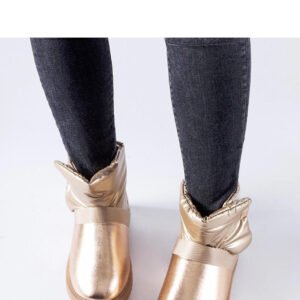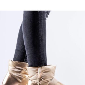 Brązowe połyskujące krótkie śniegowce Delaune to elegancki i nowoczesny wybór na zimę. Ich okrągły nosek dodaje im uroku i klasy. Te must-have buty posiadają platformę, co nadaje im modny wygląd i dodatkową wysokość. Wykonane z gumy, są odporne na deszcz i śnieg, idealne do noszenia w trudnych warunkach pogodowych. Dodatkowo, są ocieplane, zapewniając ciepło nawet w najzimniejsze dni. Praktyczne zapięcie na rzepy ułatwia zakładanie i zdejmowanie butów. Te śniegowce za kostkę nie tylko gwarantują stylowy wygląd, ale także komfort i ochronę przed zimnem. Idealne na sezon Jesień/Zima.