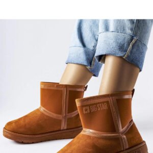Brązowe śniegowce Big Star KK274612 to idealny wybór na zimę dla kobiet, które cenią wygodę i modny wygląd. Ich ciepły krój oraz ocieplenie sprawiają, że są doskonałą ochroną przed zimnem. Dodatkowo, ich okrągły nosek, platforma oraz wysokość za kostkę dodają im stylowego wyglądu. Śniegowce posiadają wsuwane zapięcie, co ułatwia ich zakładanie i zdejmowanie. Wykonane z skóry ekologicznej zam, posiadają podeszwę z gumy, co zapewnia dobrą przyczepność na śliskich powierzchniach. Doskonale komponują się z różnymi zimowymi stylizacjami i są nie tylko praktyczne, ale również trendy. Warto zainwestować w te śniegowce na nadchodzącą jesień/zimę!