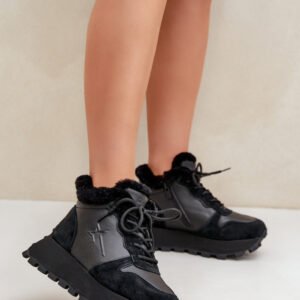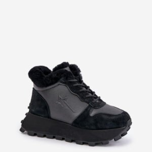 Damskie sneakersy wykonane z wysokiej jakości skóry naturalnej to doskonały wybór na chłodniejsze dni. Model osadzony na modnej platformie, zapewnia nie tylko stylowy wygląd, ale także komfort użytkowania. Ocieplane miękkim futerkiem, gwarantują ciepło podczas zimowych spacerów. Zapinane na zamek i sznurowane, co umożliwia idealne dopasowanie do stopy. Ciepłe, wygodne i praktyczne, świetne do codziennych stylizacji.