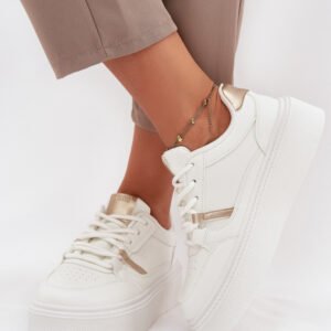 Sneakersy damskie od Big Star. Wykonane z eko skóry, osadzone na platformie, która dodaje wzrostu i wysmukla sylwetkę. Miękka wkładka zapewnia komfort przez cały dzień, a klasyczne sznurowanie pozwala na perfekcyjne dopasowanie. Doskonałe do codziennych stylizacji, te sneakersy będą świetnym uzupełnieniem każdej garderoby, dodając lekkości i stylu.