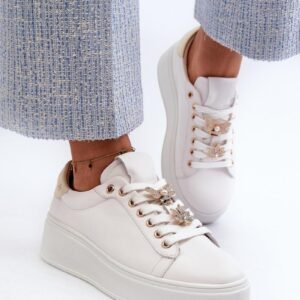Skórzane sneakersy z modnymi przypinkami to połączenie wygody i stylu. Osadzone na platformie, zapewniają dodatkową amortyzację i stabilność. Urocze przypinki dodają im oryginalności. Model ten będzie idealnym wyborem dla kobiet ceniących sobie komfort i modny wygląd.