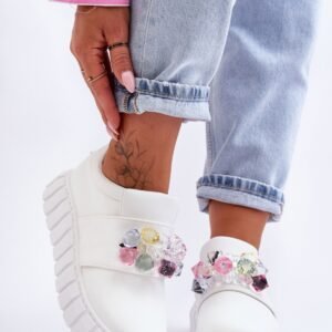 Te wyjątkowe buty sportowe na pewno skradną Twoje serce! Zostały wykonane z eko skóry. Model jest wsuwany i dodatkowo posiada na przodzie zdobienie w postaci kryształków. Buty zostały osadzone na masywnej platformie z antypoślizgową podeszwą. Miękka wkładka z połączenia pianki oraz materiału tekstylnego zapewni komfortowe użytkowanie obuwia.