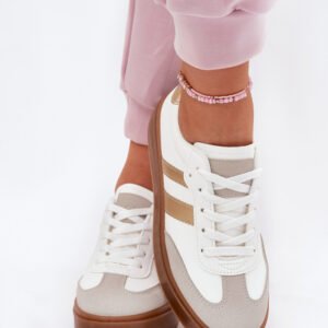 Stylowe sneakersy damskie osadzone na platformie, które nie tylko zwiększają wzrost o kilka centymetrów, ale również dodają stylowego wyglądu. Wykonane z eko skóry. Miękka, piankowa wkładka gwarantuje komfort przez cały dzień użytkowania. Te sneakersy to niezbędny element garderoby każdej kobiety, która pragnie podkreślić swój nowoczesny styl.
