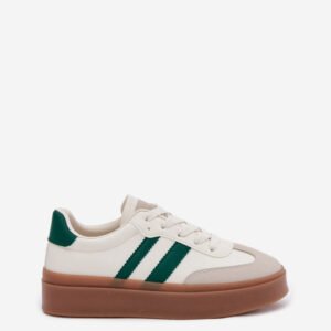 Stylowe sneakersy damskie osadzone na platformie, które nie tylko zwiększają wzrost o kilka centymetrów, ale również dodają stylowego wyglądu. Wykonane z eko skóry. Miękka, piankowa wkładka gwarantuje komfort przez cały dzień użytkowania. Te sneakersy to niezbędny element garderoby każdej kobiety, która pragnie podkreślić swój nowoczesny styl.