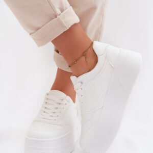 Modne sneakersy damskie z eko skóry to idealne połączenie wygody i nowoczesnego stylu. Osadzone na masywnej platformie przyciągają uwagę i wysmuklają sylwetkę. Wkładka z pianki, dodatkowo pokryta miękkim materiałem, gwarantuje komfort noszenia nawet przez długi czas. Ten model doskonale sprawdzi się w codziennych stylizacjach.