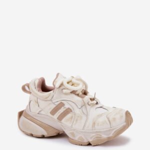 Stylowe sneakersy damskie od marki GOE, wykonane z wysokiej jakości skóry, to doskonałe połączenie wygody i modnego wyglądu. Cholewka ozdobiona brokatem dodaje butom wyjątkowego blasku, przyciągając wzrok. Masywna podeszwa zapewnia stabilność i komfort, a grube sznurowanie nadaje im odważnego charakteru. Te sneakersy to idealny wybór do codziennych stylizacji, które łączą elegancję z odrobiną wyrazistego stylu.