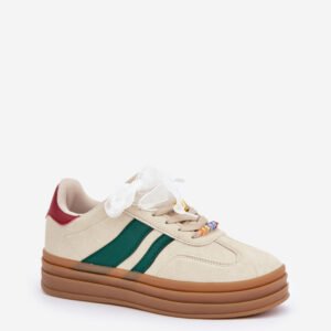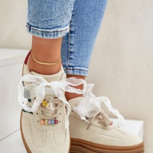 Modne sneakersy wykonane z eko zamszu to świetna propozycja dla miłośniczek wygody i stylowego wyglądu. Osadzone na platformie, nie tylko dodają kilku centymetrów wzrostu, ale także doskonale podkreślają nowoczesny charakter obuwia. Sznurowanie zostało urozmaicone uroczymi przypinkami, które nadają dziewczęcego uroku i oryginalności. Idealnie sprawdzą się zarówno w codziennych stylizacjach, jak i podczas spotkań z przyjaciółmi.