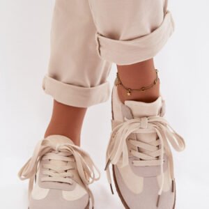 Stylowe sneakersy damskie z eko zamszu to połączenie klasycznego fasonu z modnymi detalami. Model wyróżnia się eko skórzaną wstawką z ozdobnym akcentem, która nadaje nowoczesnego charakteru. Klasyczne sznurowanie zapewnia dobre dopasowanie do stopy, a piankowa wkładka pokryta miękkim materiałem gwarantuje komfort noszenia przez cały dzień. Te sneakersy doskonale sprawdzą się w codziennych, miejskich stylizacjach.