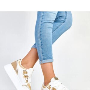 Nowoczesne buty sportowe damskie wykonane z trwałej ekologicznej skóry, które łączą funkcjonalność z modnym designem. Model posiada okrągły nosek, sznurowanie dla idealnego dopasowania oraz plecioną wstawkę na przodzie, która dodaje butom charakteru i unikalnego stylu. 5-centymetrowa platforma zapewnia lekkość kroku i wygodę podczas chodzenia, a wnętrze wykończone tkaniną gwarantuje komfort przez cały dzień. To stylowe i funkcjonalne sportowe obuwie, idealne do codziennych, miejskich stylizacji.