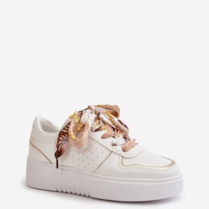 Damskie sneakersy wykonane z eko skóry. Osadzone na platformie, która dodaje im nowoczesnego charakteru i zapewnia wygodę. Buty wyróżniają się dodatkowym ozdobnym sznurowaniem, które nadaje im oryginalności i stylu. Idealne do codziennych stylizacji.