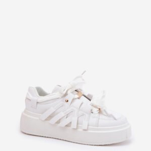 Damskie sneakersy zostały wykonane ze skóry ekologicznej. Charakteryzują się solidnym sznurowaniem, które pozwala na idealne dopasowanie butów do szerokości stopy. Buty te są osadzone na platformie. Wkładka z pianki zapewnia komfort i wygodę podczas noszenia. Ten nowoczesny model doskonale uzupełni wiele kreacji, nadając im sportowy charakter!