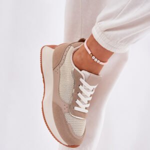 Damskie buty sportowe wykonane z eko zamszu i siateczki, które zapewniają lekkość oraz przewiewność. Osadzone na platformie, oferują dodatkową wysokość i komfort. Wewnątrz znajduje się piankowa wkładka pokryta materiałem, która gwarantuje wygodę i amortyzację na każdym kroku. Stylowe i funkcjonalne, te buty świetnie sprawdzą się w codziennych stylizacjach, łącząc nowoczesny wygląd z komfortem na co dzień.
