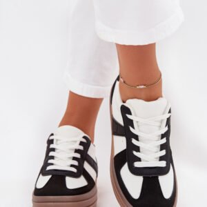 Modne sneakersy z eko skóry to połączenie stylu i komfortu. Osadzone na platformie, dodają lekkości i wysokości, zapewniając wygodę podczas codziennych aktywności. Wyjmowana wkładka z pianki, pokryta dodatkowo materiałem, gwarantuje miękkość i odpowiednie wsparcie dla stopy przez cały dzień. Idealne do codziennych stylizacji.