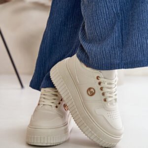 Damskie buty sportowe wykonane z eko skóry. Masywna platforma nie tylko unosi sylwetkę, ale także zapewnia doskonałą stabilność. Wnętrze ocieplone jest futerkiem, co zapewnia dodatkowy komfort i ochronę przed zimnem. Model klasycznie sznurowany. Idealne do noszenia zarówno na co dzień, jak i podczas aktywności na świeżym powietrzu.