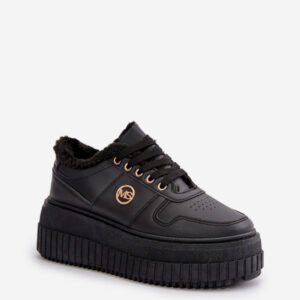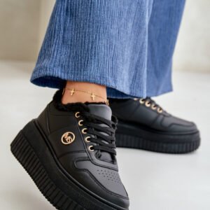 Damskie buty sportowe wykonane z eko skóry. Masywna platforma nie tylko unosi sylwetkę, ale także zapewnia doskonałą stabilność. Wnętrze ocieplone jest futerkiem, co zapewnia dodatkowy komfort i ochronę przed zimnem. Model klasycznie sznurowany. Idealne do noszenia zarówno na co dzień, jak i podczas aktywności na świeżym powietrzu.