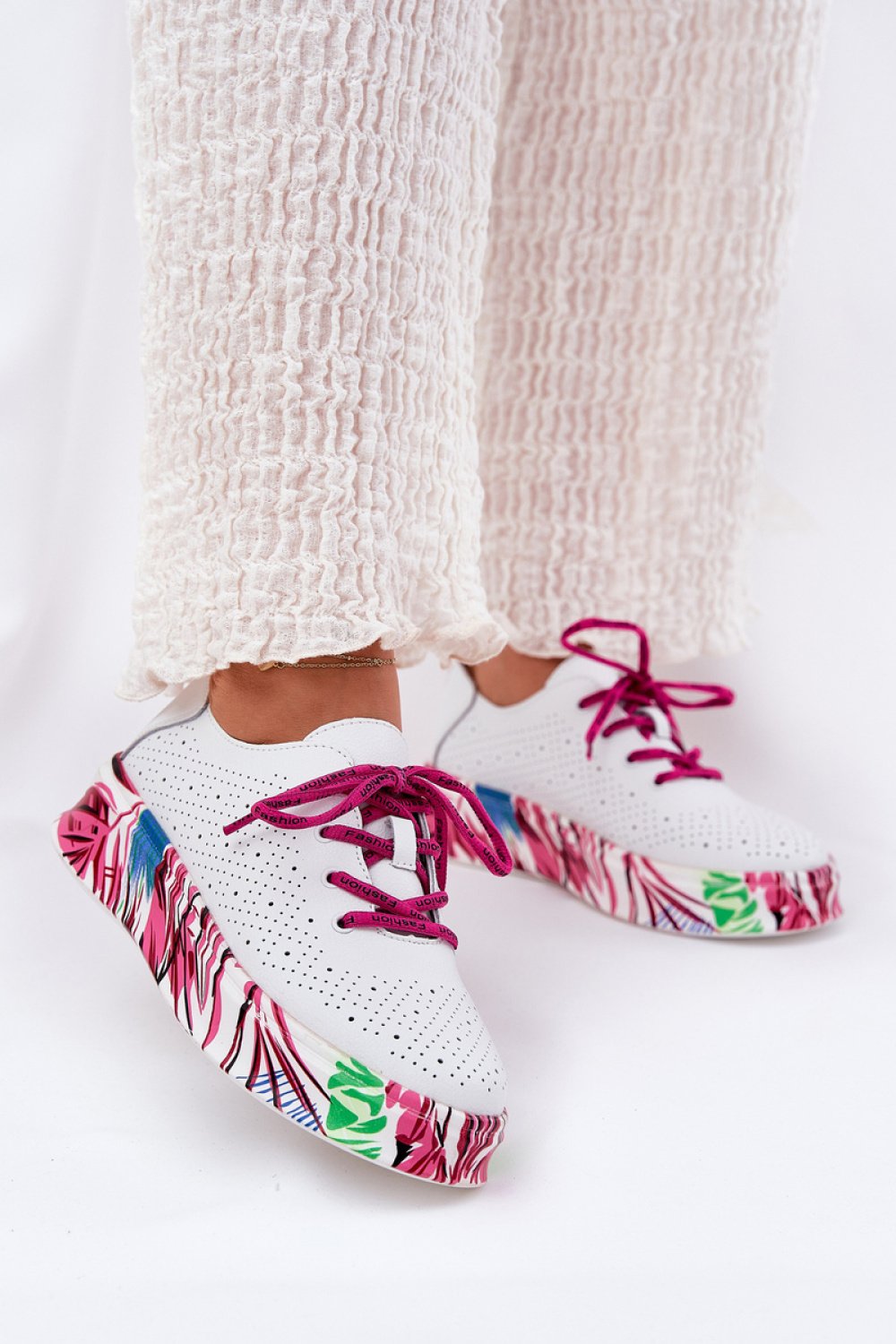Sneakersy damskie od marki Vinceza. Wykonane naturalnej skóry. Model ten wyróżnia wzorzysta platforma, która nadaje wyjątkowego charakteru. Noski zaokrąglone. Miękka wkładka zapewni wygodę na każdym kroku. Stylowe, lekkie i wygodne doskonałe do różnych stylizacji!