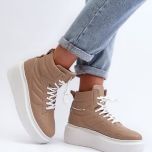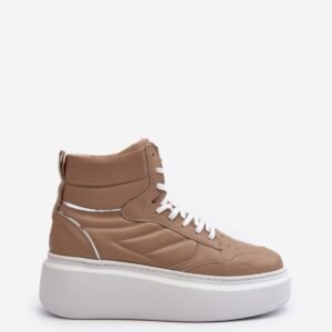 Modne buty sportowe damskie wykonane ze skóry naturalnej. Osadzone na masywnej platformie. Cholewka za kostkę. Noski zaokrąglone. Model z klasycznym sznurowaniem. Idealne na wiosenne dni! Fason ten na pewno przypadnie Ci do gustu!
