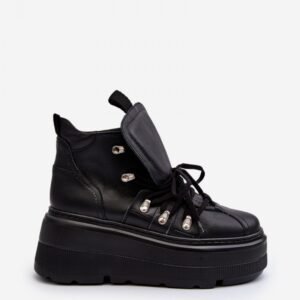 Sportowe buty wykonane z wysokiej jakości skóry naturalnej. Osadzone na masywnej platformie oraz lekkim koturnie. Noski zaokrąglone. Usztywniony zapiętek. Skórzana wkładka zapewni wygodę podczas użytkowania. Ten niezwykle modny fason idealnie uzupełni wiosenne stylizacje!