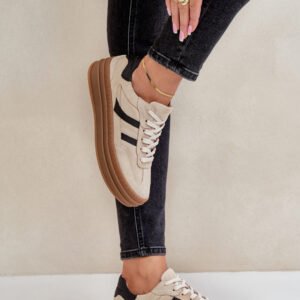 Damskie sneakersy z naturalnego zamszu to stylowy i wszechstronny wybór do codziennych stylizacji. Osadzone na wygodnej platformie, dodają kilku centymetrów wzrostu, jednocześnie zapewniając stabilność. Zaokrąglone noski nadają im klasycznego charakteru, który świetnie wpasowuje się zarówno w casualowe, jak i bardziej eleganckie zestawienia. Idealne do jeansów, sukienek czy spódnic, te modne sneakersy stanowią połączenie wygody z aktualnymi trendami.