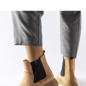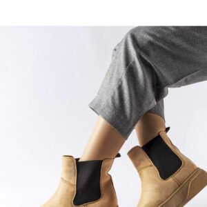 Ciemnobeżowe botki na platformie Benilde to idealny wybór dla kobiet ceniących sobie elegancję i wygodę. Ich okrągły nosek dodaje delikatności, a wysokość platformy optycznie wydłuża nogi, co sprawia, że są absolutnym hitem mody damskiej. Dodatkowym atutem jest fakt, że są wsuwane, co ułatwia ich zakładanie i zdejmowanie, sprawiając, że są praktyczne na co dzień. Ciemnobeżowy kolor nadaje im ponadczasowego charakteru, który można łatwo dopasować do różnych stylizacji. Botki na platformie Benilde wykonane są z skóry ekologicznej zam, a podeszwa z gumy zapewnia komfort noszenia. Idealne na jesień i wiosnę, te botki będą doskonałym uzupełnieniem garderoby każdej kobiety, która ceni sobie jakość, wygodę i modne wzornictwo.