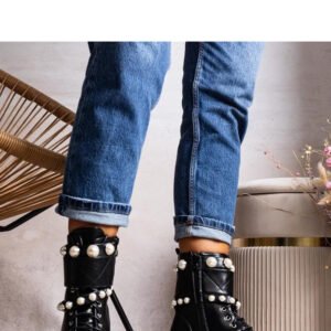 Czarne botki damskie sznurowane z perełkami Carvala – Solea
