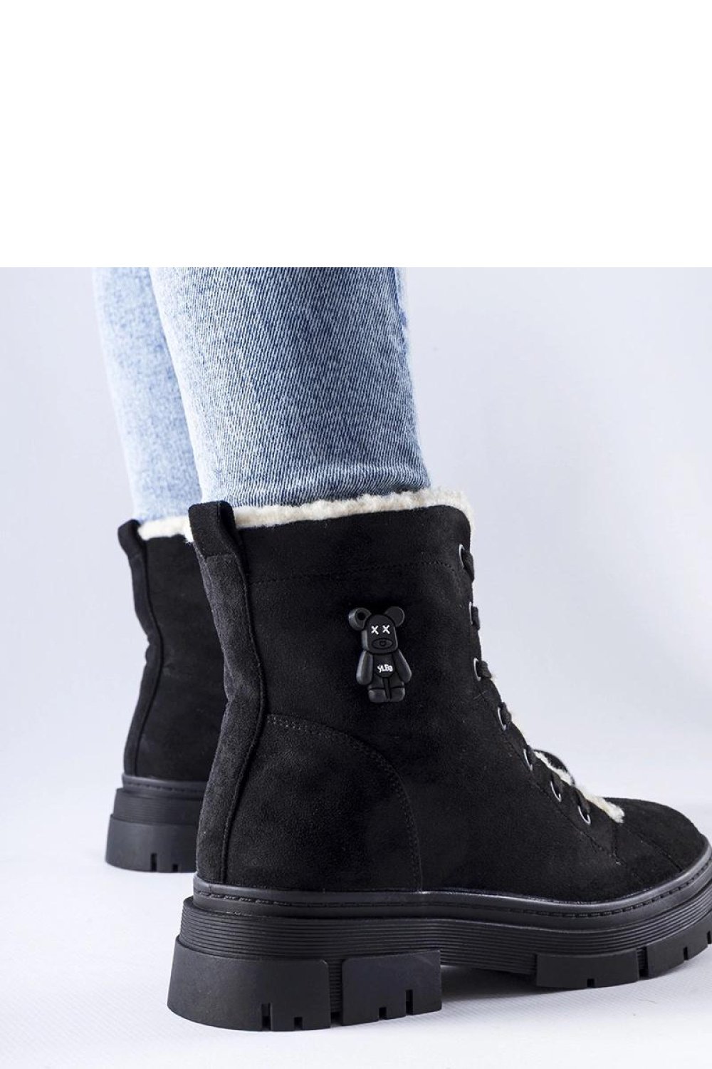 Czarne botki ocieplane z eko-zamszu Pompei to doskonały wybór na chłodne dni. Ich design jest nowoczesny i pasuje do wielu stylizacji, a dodatkowo posiadają zamek po boku ułatwiający ich zakładanie i zdejmowanie. Gumowa podeszwa zapewnia dobrą przyczepność na różnych powierzchniach, a ocieplenie sprawia, że można cieszyć się komfortem i ciepłem nawet w najzimniejsze dni. Dodatkowo, platforma dodaje kilka centymetrów wzrostu, zapewniając stabilność podczas chodzenia. Te botki to doskonałe połączenie funkcjonalności, mody i wygody, które bez wątpienia staną się ulubionym elementem zimowej garderoby. Materiał zewnętrzny to skóra ekologiczna zam, a materiał podeszwy to guma. Zapięcie na zamek. Idealne na sezon Jesień/Zima.