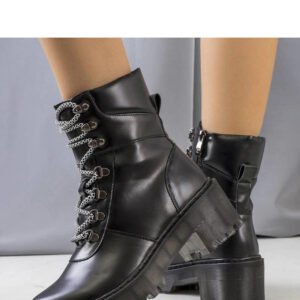 Czarne botki z ozdobnym wiązaniem Hildel – Solea