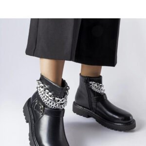 Czarne botki Mezzavia z ozdobnymi łańcuchami to doskonały wybór dla każdej modnej kobiety. Ich unikalny design, dzięki precyzyjnie umieszczonym ozdobom na cholewce buta, sprawia, że stają się niezwykle modne i efektowne. Dodatkowo, gumowa podeszwa zapewnia świetną przyczepność i trwałość, a wygodne zapięcie na zamek ułatwia zakładanie i zdejmowanie butów. Te czarne botki są idealnym uzupełnieniem zarówno casualowych, jak i eleganckich stylizacji, nadając im wyjątkowego charakteru. Dzięki swojej uniwersalności, świetnie sprawdzą się zarówno na co dzień, jak i na specjalne okazje. Bądź na czasie i dodaj trochę modnego pazura do swojej garderoby dzięki botkom Mezzavia z ozdobnymi łańcuchami!