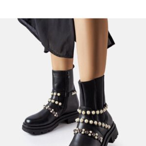 Eleganckie botki Callicratide to idealny wybór na zimę. Ich czarne wykończenie i subtelne zdobienia w postaci perełek nadają im wyjątkowego charakteru. Wygodny płaski obcas oraz wysokość za kostkę zapewniają stabilność i komfort noszenia przez cały dzień. Botki posiadają praktyczny zamek, co ułatwia ich zakładanie i zdejmowanie. Doskonale sprawdzą się zarówno na specjalne okazje, jak i na co dzień. Buty zostały wykonane z wysokiej jakości skóry ekologicznej, co gwarantuje ich trwałość. Dodatkowo, ich nowoczesny design świetnie uzupełni każdą zimową stylizację, dodając elegancji i stylu. Idealne uzupełnienie jesienno-zimowej garderoby.
