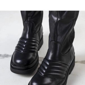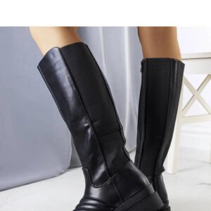 Eleganckie czarne kozaki Calliope to idealny dodatek do każdej jesiennej i zimowej stylizacji. Wykonane z gładkiej ekoskóry, ozdobione delikatnymi przeszyciami, prezentują się bardzo stylowo i elegancko. Wygodne zapięcie na zamek błyskawiczny po wewnętrznej stronie cholewki ułatwia ich zakładanie i zdejmowanie. Kozaki posiadają płaski obcas oraz solidną podeszwę ze stylowymi żłobieniami, co zapewnia stabilność i wygodę podczas noszenia. Elastyczna wstawka po zewnętrznej stronie dodatkowo podnosi komfort użytkowania. Wnętrze lekko ocieplane kocem obuwniczym zapewnia ciepło i wygodę w chłodne dni. Kozaki Calliope to propozycja dla kobiet ceniących ponadczasowy i elegancki styl. Numeracja standardowa, prosimy kierować się swoim rozmiarem przy zakupie.