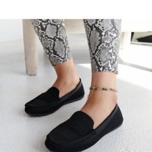 Czarne materiałowe mokasyny Fiammetta to doskonały wybór na letnie dni. Wykonane z wysokiej jakości tworzywa sztucznego, te nowoczesne mokasyny charakteryzują się wygodnym wsuwaniem. Mają płaskie podeszwy i delikatnie zaokrąglony nosek, co nadaje im świeży i modny wygląd. Te lekkie buty będą doskonałym dodatkiem do letniej garderoby. Materiał zewnętrzny to tkanina, a podeszwa wykonana jest z trwałego tworzywa sztucznego w kolorze czarnym. Te stylowe mokasyny z pewnością będą idealnym wyborem na ciepłe dni!