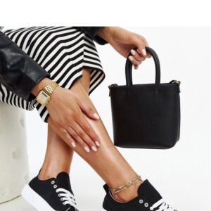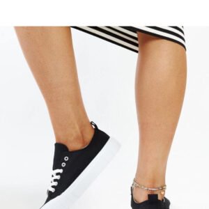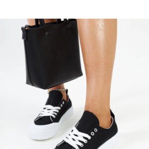 Czarne trampki Eduarda Stilizate są idealnym połączeniem designu i funkcjonalności. Ich zaokrąglony przód i niska podeszwa sprawiają, że są niezwykle wygodne i doskonałe na co dzień. Wykonane z wysokiej jakości materiałów, posiadają gumową podeszwę zapewniającą dobrą przyczepność. Dodatkowo, sznurowane zapięcie pozwala na dopasowanie ich do każdej stopy. Te trampki doskonale uzupełniają casualowe stylizacje, dodając im świeżości i nowoczesności. Materiał zewnętrzny: Tkanina, Ocieplenie: Nie, Materiał podeszwy: Guma, Kolor podeszwy: Biały, Zapięcie: Sznurowane, Kolekcja: Lato/Wiosna.
