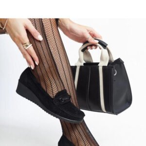 Czarne mokasyny na koturnie Amela są doskonałą opcją dla młodego pokolenia, które docenia innowacyjny design i wygodę. Wykonane z wysokiej jakości gumy, nie tylko prezentują się elegancko, ale są także bardzo praktyczne. Ich slip-on design z migdałowym noskiem sprawia, że są one bardzo łatwe do założenia. Te modne buty będą doskonałym uzupełnieniem każdej casualowej stylizacji. Materiał zewnętrzny: Skóra ekologiczna Ocieplenie: Brak Materiał podeszwy: Guma Kolor podeszwy: Czarny Zapięcie: Wsuwane Kolekcja: Wiosna/Lato