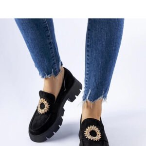 Czarne mokasyny ozdobione klamerką Stanislas to eleganckie i wygodne obuwie, które doskonale sprawdzi się zarówno na co dzień, jak i od święta. Wykonane ze skóry ekologicznej z dbałością o detale, zapewniają wysoką jakość i trwałość. Niski obcas oraz odpowiednie wsparcie dla stóp sprawiają, że możesz nosić je przez cały dzień bez obaw o zmęczenie. Subtelne cyrkonie dodają im uroku, a wsuwany design ułatwia zakładanie i zdejmowanie. Okrągły nosek nadaje im elegancji, a czarny kolor podeszwy pasuje do różnorodnych stylizacji. Mokasyny Stanislas to doskonały wybór dla osób ceniących sobie nowoczesny design, wysoką jakość i wygodę noszenia. Idealne uzupełnienie garderoby na wiosnę i lato.