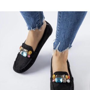 Czarne mokasyny z ozdobnymi błyskotkami Fusco – Solea