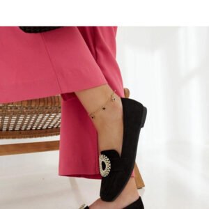Czarne mokasyny Celena to eleganckie obuwie idealne na co dzień. Wykonane z wysokiej jakości gumy, zapewniają komfort i trwałość. Zdobione subtelnie cyrkoniami, dodają im ekskluzywnego charakteru. Ich wsuwany design sprawia, że są nie tylko stylowe, ale także wygodne w użyciu. Niski, kwadratowy nosek nadaje im nowoczesny wygląd, który idealnie wpisuje się w trendy modernistyczne. Dodatkowo, przystępna cena sprawia, że są doskonałym wyborem dla osób ceniących sobie modę i komfort. Materiał zewnętrzny to skóra ekologiczna zamszowa, podeszwa wykonana z gumy w kolorze czarnym. Doskonałe na kolekcję Lato/Wiosna.