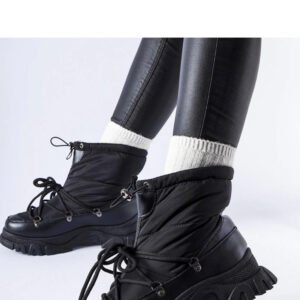 Czarne ocieplane śniegowce Aubine to doskonałe buty na zimę, które zapewniają nie tylko ochronę przed zimnem i wilgocią, ale także stylowy wygląd. Wykonane z wysokiej jakości materiałów, są niezwykle trwałe i odporne na warunki atmosferyczne. Dzięki sznurowanemu zamknięciu można je idealnie dopasować do stopy, a średni obcas dodaje im elegancji. Okrągły nosek nadaje butom uniwersalny charakter, który pasuje do różnych stylizacji. Dodatkowo, są wodoodporne dzięki wykonaniu z gumy, co ułatwia utrzymanie ich w czystości. Dostępne w dwóch wersjach: na płaskim obcasie lub na niewielkim obcasie. Czarne ocieplane śniegowce Aubine to idealny wybór dla każdej modowej kobiety pragnącej ciepła i stylu w zimowe dni.
