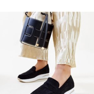 Czarne perforowane półbuty Muna są idealnym wyborem na lato. Wykonane z wysokiej jakości gumy, są nie tylko eleganckie, ale również wygodne. Ich niski design i zaokrąglony nosek sprawiają, że są doskonałe na gorące dni. Dodatkowo, dzięki slip-on designowi, są łatwe do założenia i zdejmowania. Te współczesne buty dodadzą szyku każdej stylizacji, sprawiając że będziesz czuć się modnie i wygodnie przez cały sezon. Materiał zewnętrzny wykonany jest z ekologicznej skóry zamszowej, podeszwa wykonana jest z gumy w kolorze beżowym. Idealne na lato!