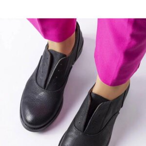 Czarne półbuty perforowane Kairaouani to idealny wybór dla kobiet ceniących wygodę i styl. Buty na płaskim obcasie z niską cholewką wykonane są z ażurowej ekoskóry, co sprawia, że są lekkie i przewiewne. Model sznurowany z okrągłymi noskami oraz wkładką z ekoskóry zapewniającą komfort noszenia. Półbuty najlepiej prezentują się na wąskiej stopie i doskonale komponują się z eleganckimi stylizacjami. Doskonałe do spodni garniturowych, koszul i sukienek wyjściowych. Numeracja standardowa, więc warto wybrać swój rozmiar. Podeszwa wykonana z tworzywa sztucznego w kolorze czarnym, zapięcie na wsuwane ułatwia zakładanie butów. Idealne na letnie dni, gdy chcemy czuć się wygodnie i stylowo jednocześnie.