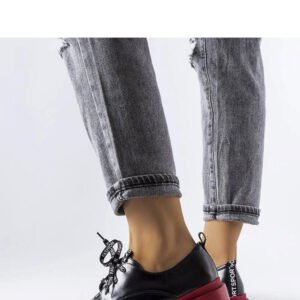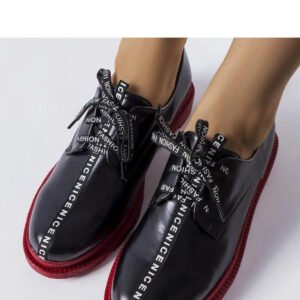 Półbuty Hanifan to idealna propozycja dla wszystkich miłośniczek mody, które chcą dodać trochę ekstrawagancji do swoich stylizacji. Czarne półbuty z kontrastową czerwoną podeszwą na traktorowej gumowej platformie z kwadratowym, płaskim obcasem będą doskonałym uzupełnieniem każdej casualowej lub rockowej stylizacji. Te modne półbuty posiadają niską cholewkę sięgającą przed kostkę, krótkie sznurowanie z przodu, okrągły nosek oraz minimalistyczne przeszycia, które dodają im charakteru. Wykonane z wysokiej jakości ekoskóry, z wkładką ze skóry naturalnej zapewniają komfort noszenia przez cały dzień. Numeracja jest standardowa, więc warto kierować się swoim zwykłym rozmiarem. Półbuty Hanifan to doskonały wybór dla kobiet, które chcą wyrazić swój indywidualny styl i podkreślić swoją osobowość. Idealnie będą pasować do bluzki z dekoracyjnymi łańcuszkami i skórzanej spódnicy. Ocieplenie nie jest w nich przewidziane, dlatego będą idealne na ciepłe dni.