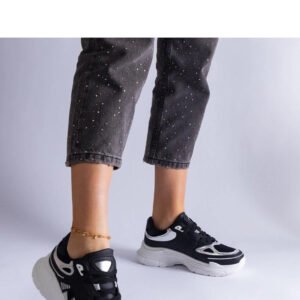 Czarne sneakersy damskie ze srebrnymi wstawkami Gaytan Hurtado to doskonałe buty na co dzień! Ich wyjątkowy design z pewnością przyciągnie spojrzenia innych. Wygodne i stylowe, świetnie sprawdzą się w różnych stylizacjach, zarówno na co dzień, jak i na bardziej specjalne okazje. Dzięki nim poczujesz się pewnie i modnie! Sneakersy mają materiał zewnętrzny wykonany z wysokiej jakości skóry ekologicznej, niską wysokość oraz podeszwę z gumy w białym kolorze. Zapięcie na sznurowane sprawia, że buty są stabilne i wygodne. Idealne połączenie stylu, komfortu i trwałości!