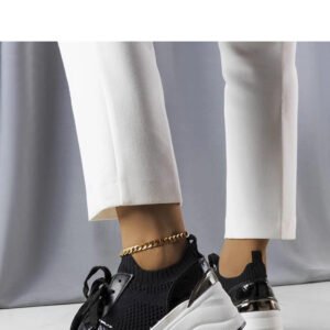 Czarne sneakersy na koturnie Ann to doskonałe obuwie dla każdej kobiety, która ceni sobie wygodę i styl. Nie posiadają one ocieplenia, co sprawia, że idealnie sprawdzą się na ciepłe letnie dni. Wykonane z wysokiej jakości materiałów, zapewniają komfort noszenia przez cały dzień. Podeszwa wykonana z gumy w kolorze białym dodaje im lekkości i świeżości. Te sneakersy z kolekcji na lato będą doskonałym uzupełnieniem każdej casualowej stylizacji.