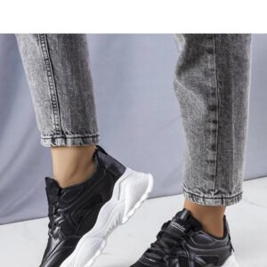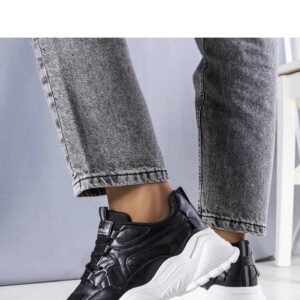 Czarne sneakersy na masywnej podeszwie Lorene to modny i wygodny wybór na lato. Sneakersy posiadają białą gumową podeszwę, która zapewnia stabilność i wygodę podczas noszenia. Zapięcie na sznurowadła pozwala dopasować buty do własnego komfortu. Idealne na co dzień, do casualowych stylizacji. Ocieplenie nie jest dostępne, co sprawia, że są idealne na ciepłe dni. Stylish and comfortable!