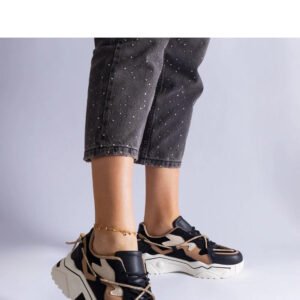 Eleganckie czarne sneakersy zdobione cyrkoniami na sznurówce Valdeza to absolutny hit tego sezonu! Buty charakteryzują się wysoką jakością wykonania oraz modnym designem, który z pewnością przyciągnie uwagę. Wygodne i stylowe, idealne do codziennych stylizacji. Zostały wykonane z wysokiej jakości skóry ekologicznej, posiadają niską cholewkę i białą gumową podeszwę. Buty zapinane są na sznurowadła, co zapewnia idealne dopasowanie do stopy. Doskonały wybór dla wszystkich miłośników mody i wygody.