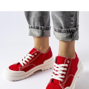 Czerwone trampki Nassar to doskonały wybór dla osób ceniących sobie wygodę i styl. Wykonane z wysokiej jakości materiału, zapewniają trwałość i komfort noszenia. Ich sznurowane zapięcie oraz gumowa podeszwa z białym nosem dodają im charakteru. Te damskie trampki świetnie komponują się zarówno z codziennymi stylizacjami, jak i bardziej eleganckimi outfitami. Staranne szycie gwarantuje długotrwałe użytkowanie. Jeśli szukasz modnych butów na wiosnę i lato, te Nassar spełnią Twoje oczekiwania.