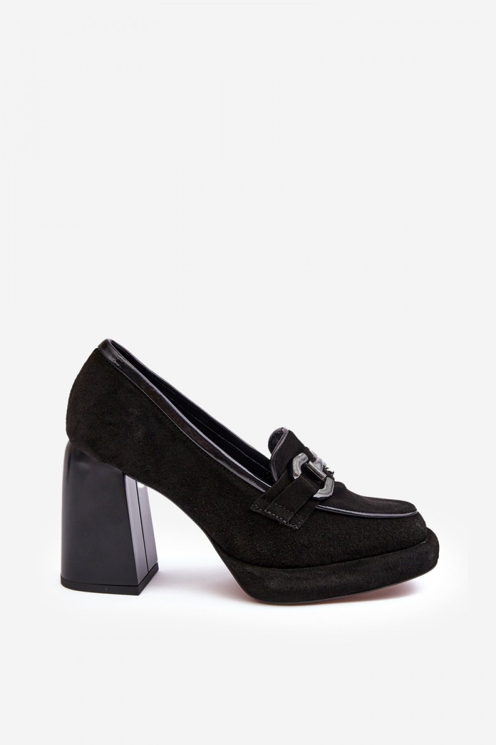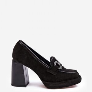Czółenka damskie wykonane zostały z wysokiej jakości naturalnej skóry. Osadzone na platformie i masywnym obcasie w postaci słupka. Miękka, skórzana wkładka zapewni komfort podczas użytkowania. Noski zaokrąglone. Zapiętek usztywniony. Z przodu ozdoba z tworzywa sztucznego.